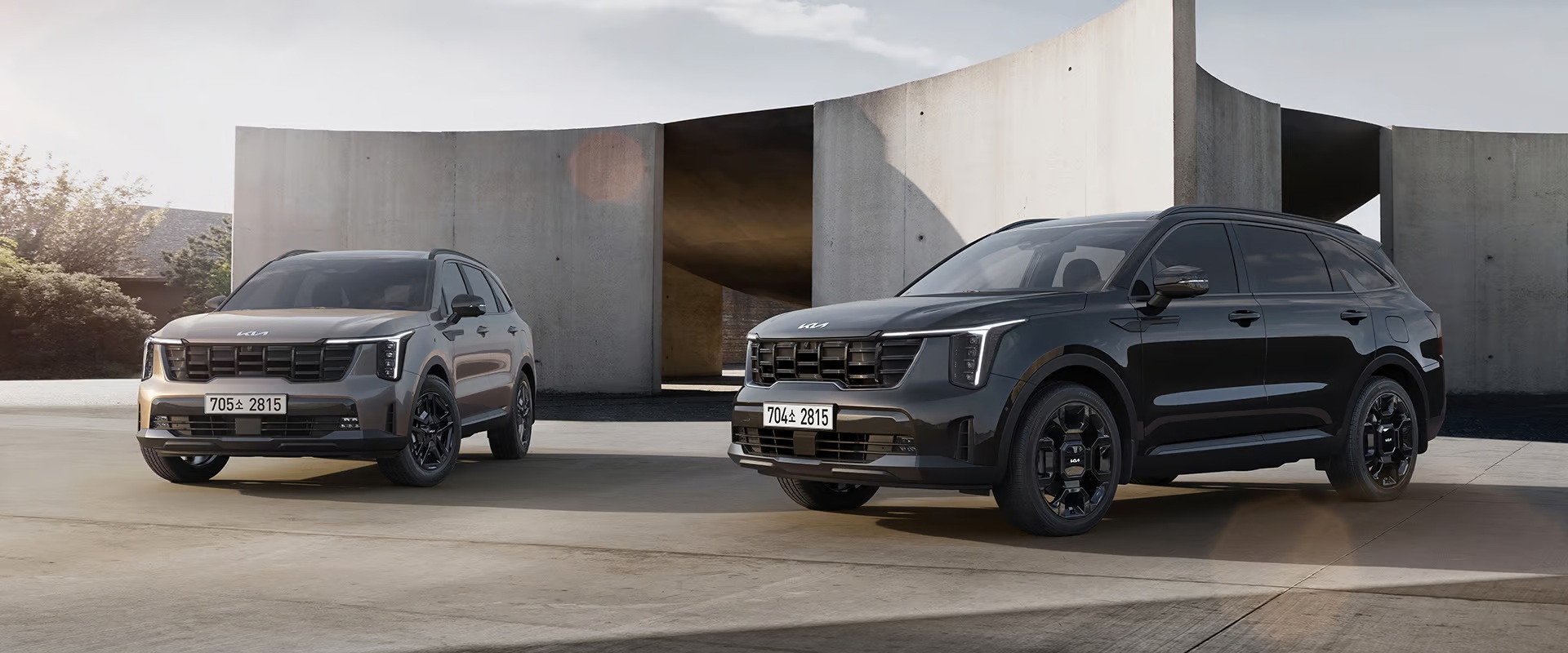 - 쏘렌토가 디자인이 참 예뻐졌습니다. 그렇기 때문에, 가장먼저 디자인부터 알아보겠습니다. 현재 쏘렌토는 강인하면서도 세련된 조형미를 자랑합니다, 전면부의 타이거 노즈 그릴은 더욱 커지고, 풀 LED 헤드램프는 기아 특유의 입체적인 픽셀 디자인을 적용해 존재감을 높였죠. 측면은 유려한 캐릭터 라인이 이어지며, 20인치 알로이 휠과 조화되어 스포티함과 고급스러움을 동시에 전달합니다. 후면부에는 수평형 풀 LED 테일램프가 넓은 차체 너비를 강조하며, 듀얼 머플러 팁과 리어 스포일러가 성능형 SUV의 분위기를 완성합니다.